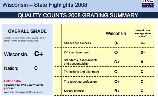 Quality Counts State K-12 Survey: Wisconsin = C+
